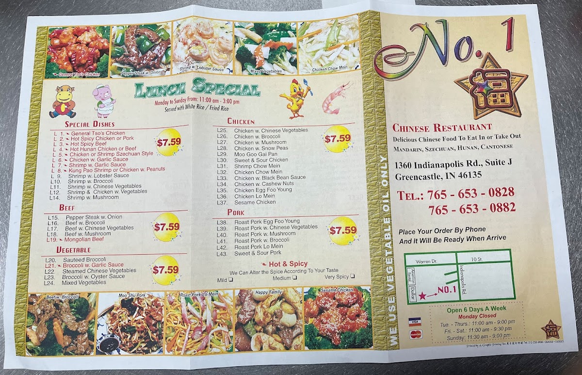 Friendly service, all cooking areas visible from behind glassed partition. Employees masked, surfaces squeaky clean. Currently Order by phone and pick-up only (dining area closed). Food hot, delicious, plentiful, inexpensive, and fast. Best value and experience judging from restaurants in Avon and Greencastle serving Asian food. Highly recommend!